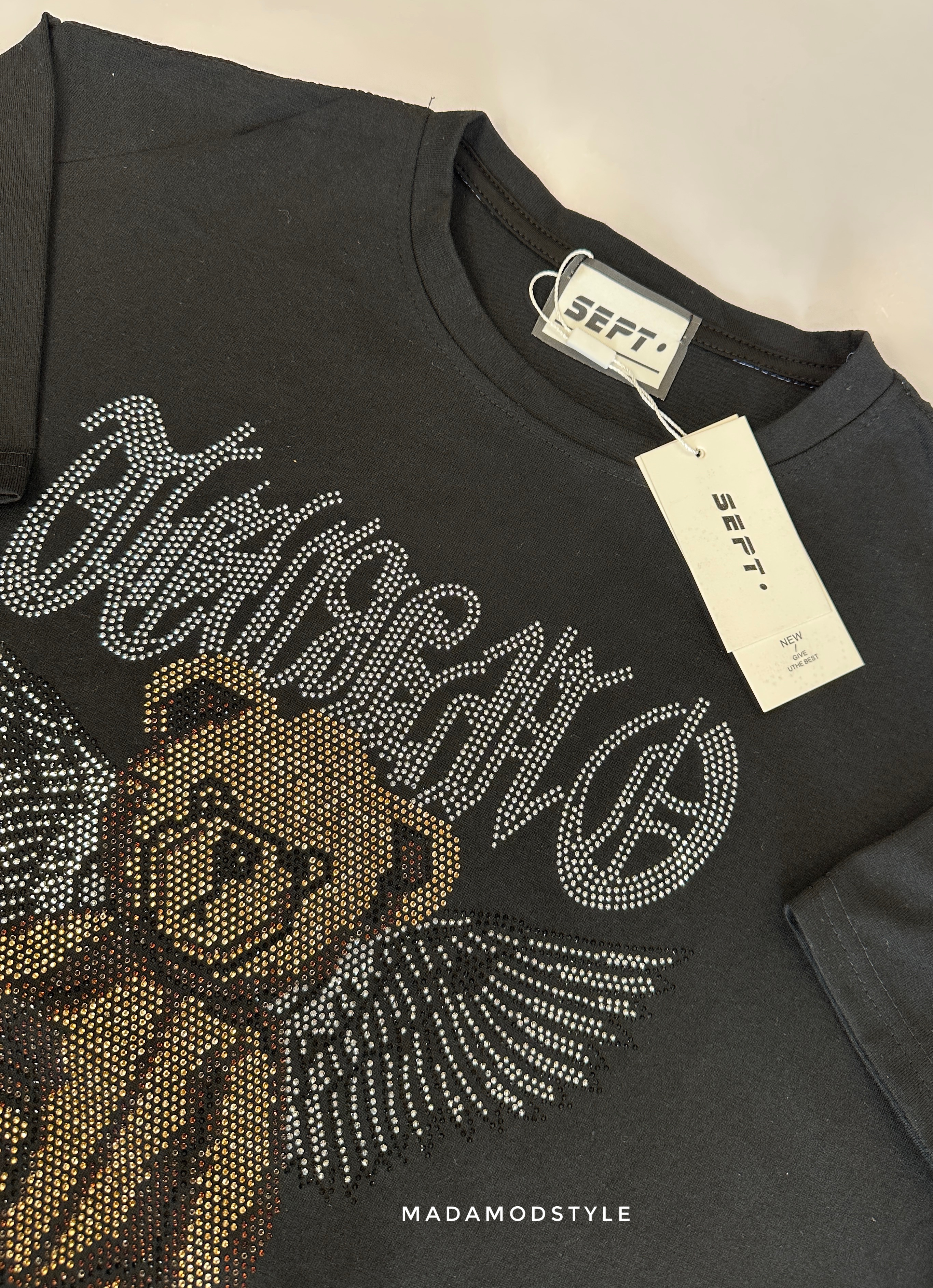 تیشرت لانگ نخی نگینی طرح دار